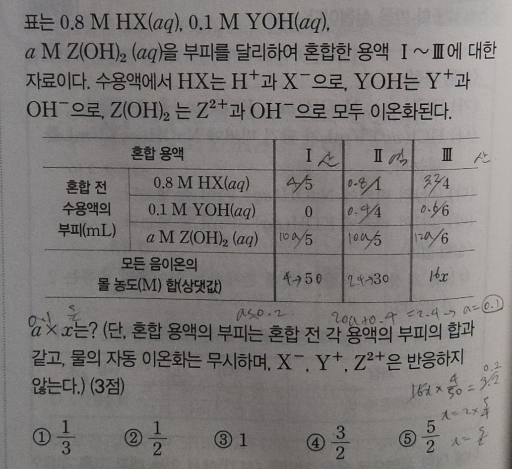 답지에는 ㄷ이 맞고 이온수 비가 1:2라고 나와있는데 전체 이온 수 비가 1:2로 도출되는 과정을 잘 이해 못했습니다,,