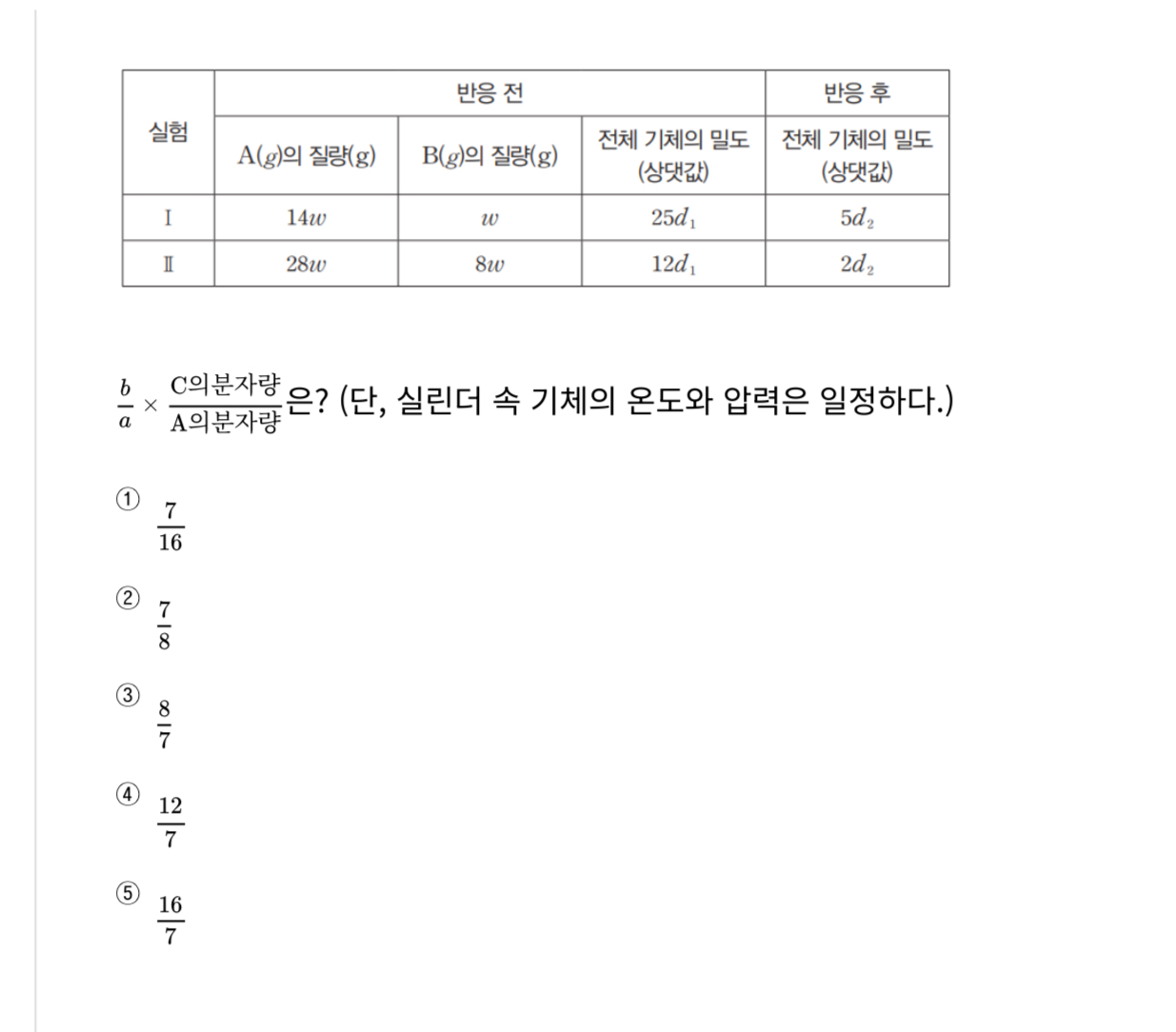 과제물에서 풀었던 문제인데 다시 풀려하니까 안 풀려서 질문드립니다.. 밀도비를 어떻게 해석해서 접근해야할까요?