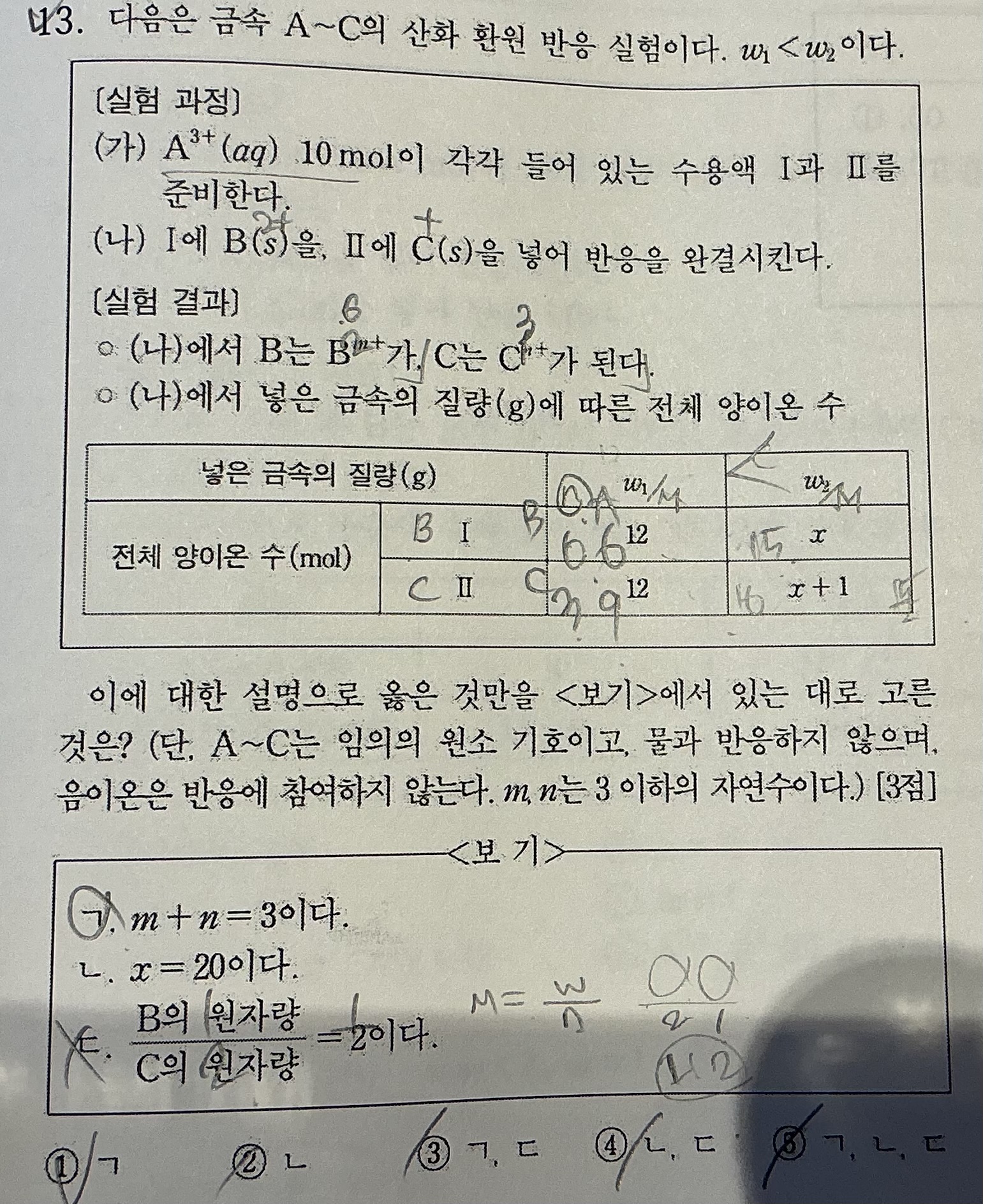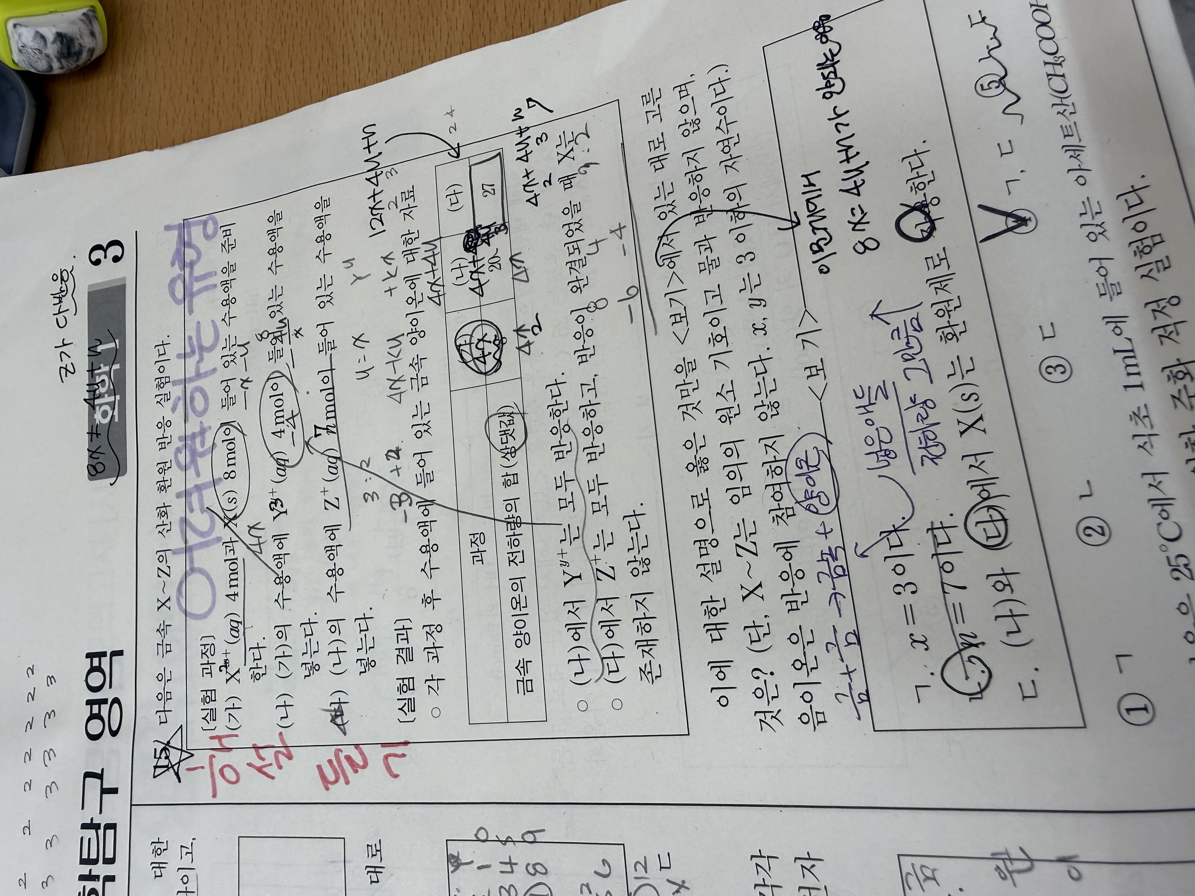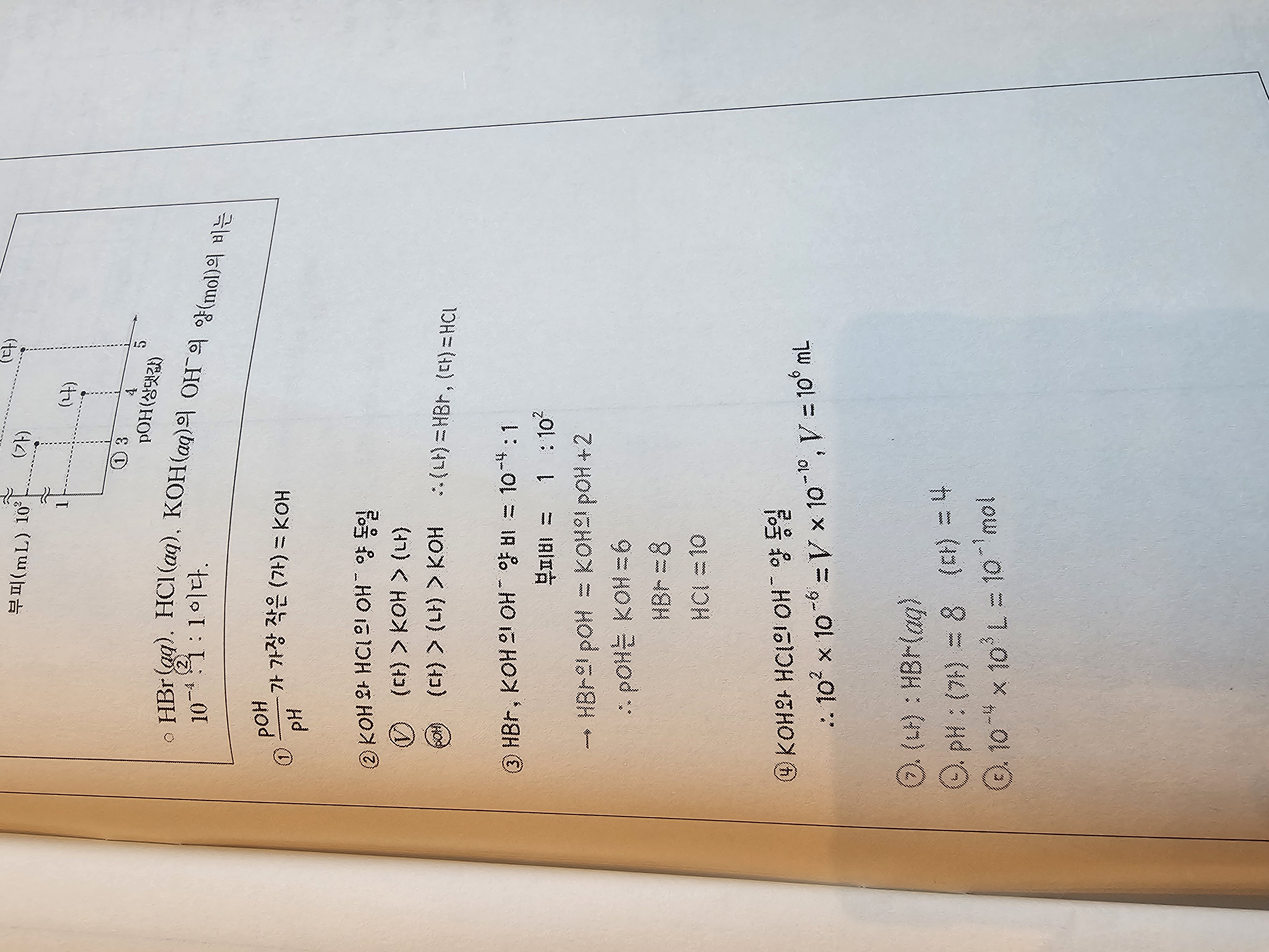 이번 pH pOH 과제물 14번 문제 ㄷ. 해설에도 V= 10? 이라고 되어있는데 ㄷ에는 10^-4×10³이라고 해설이 쓰여있어용.....
