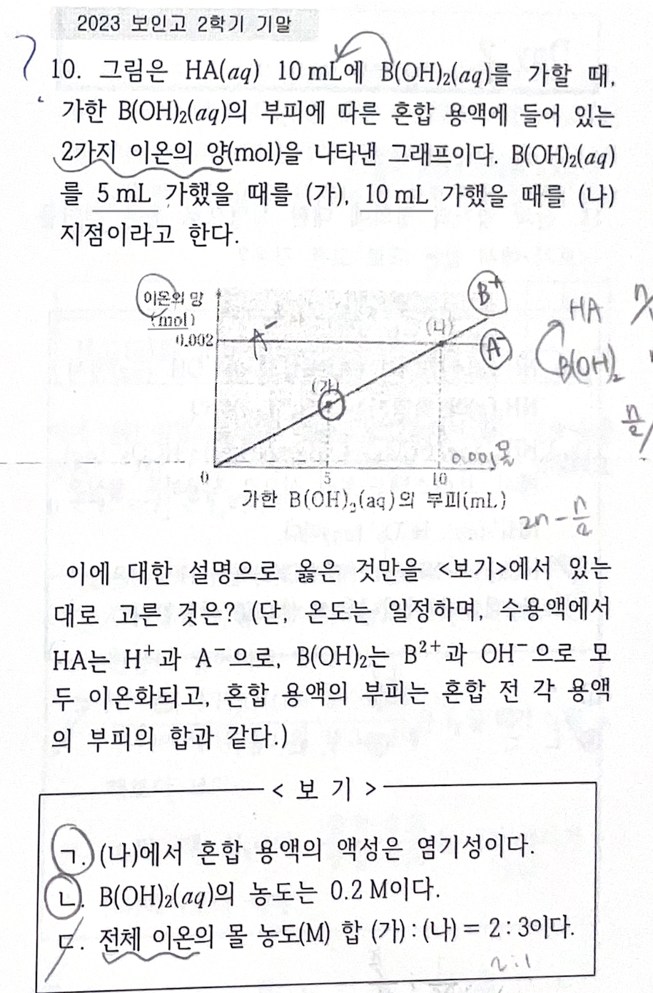 답지에는 ㄷ이 맞고 이온수 비가 1:2라고 나와있는데 전체 이온 수 비가 1:2로 도출되는 과정을 잘 이해 못했습니다,,