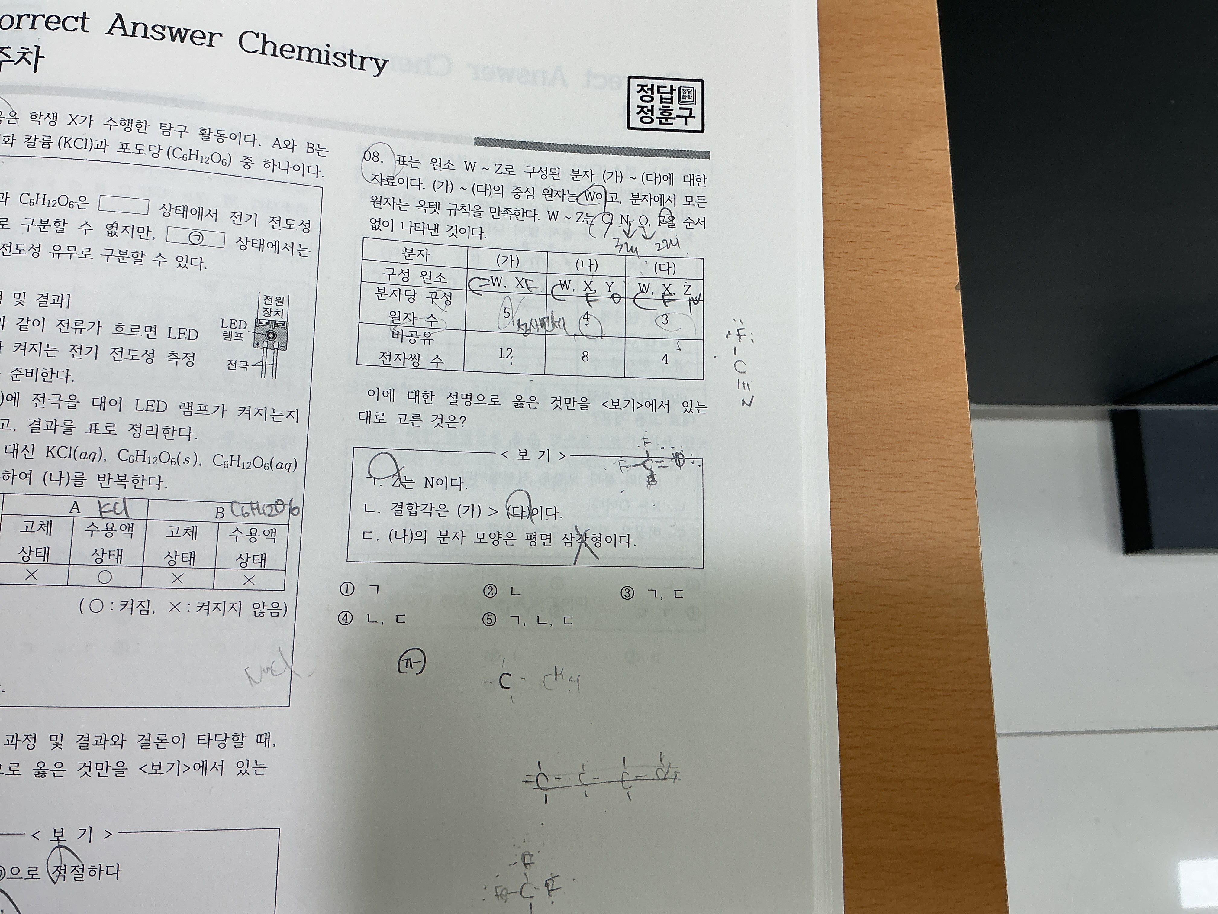 가,나,다 모두 비공유 전자쌍이 있는데 그러면 직선형, 평면삼각형, 정사면체형이 불가능한거 아닌가요?