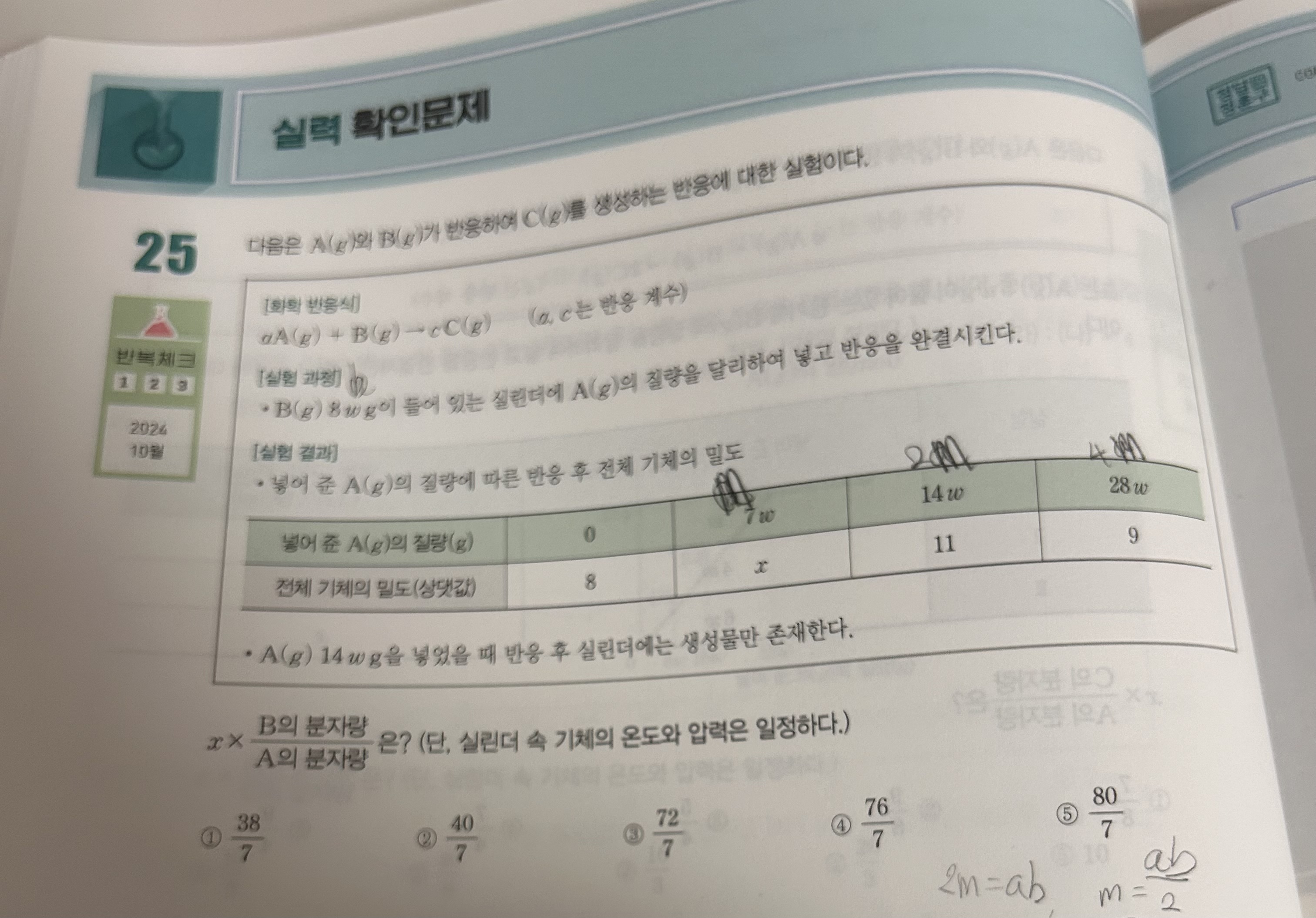 ㄷ에서 왜 1g 모두 반응했을때를 물어보는데 1몰 반응했을때 결과를 구하는건가요?