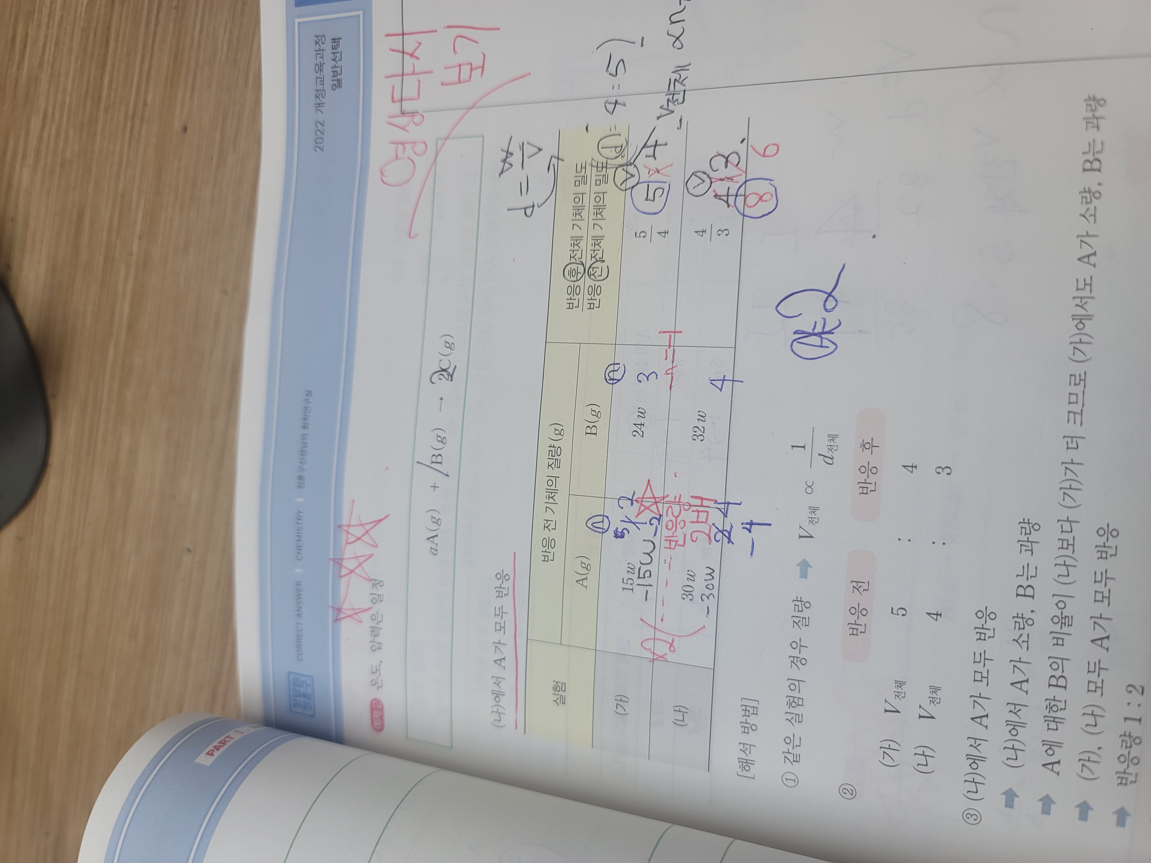 A나 B의 몰수를 곱해서 부피비를 3:4로 맞춰줘야하는데 안 맞춰집니다..