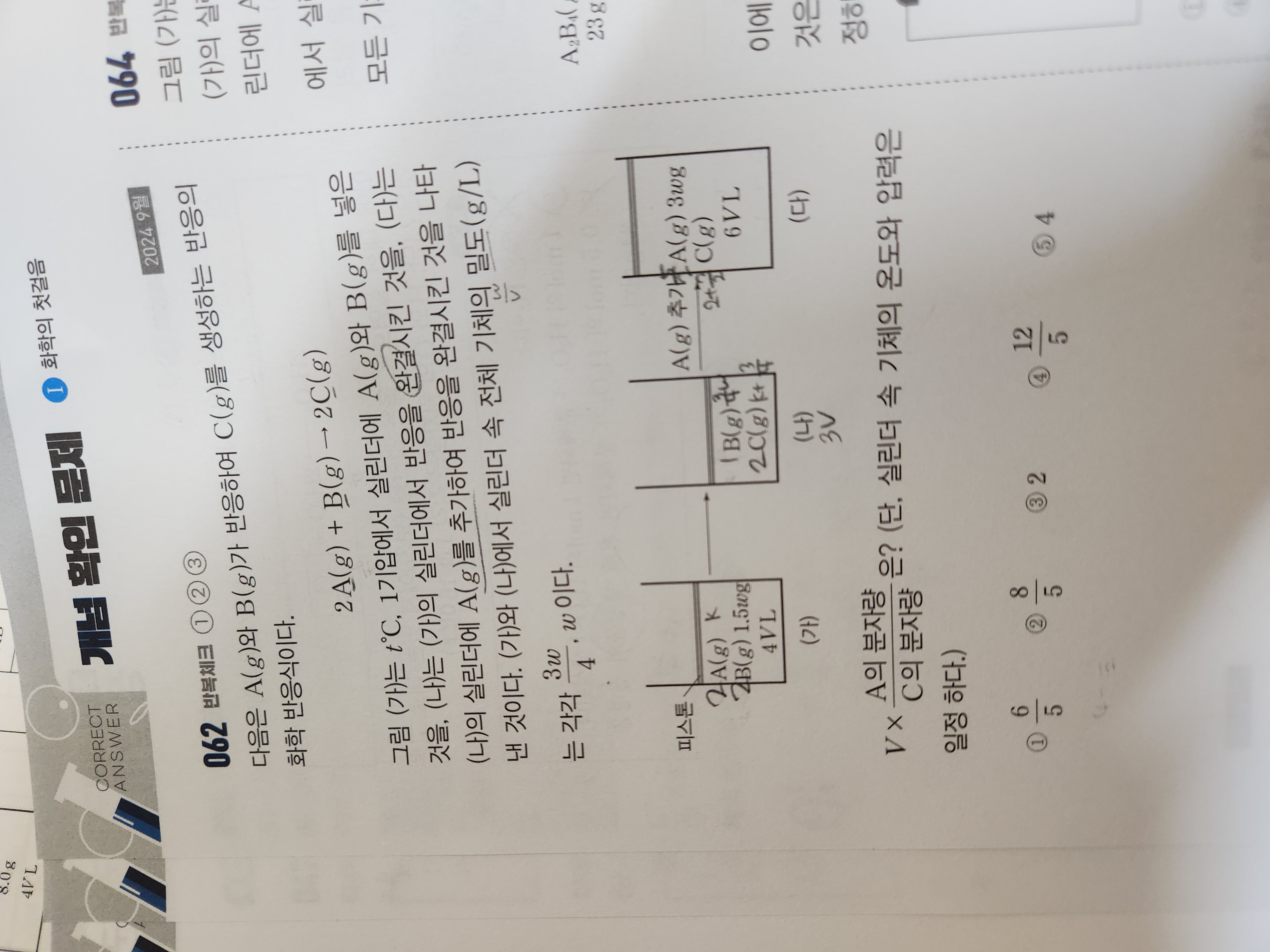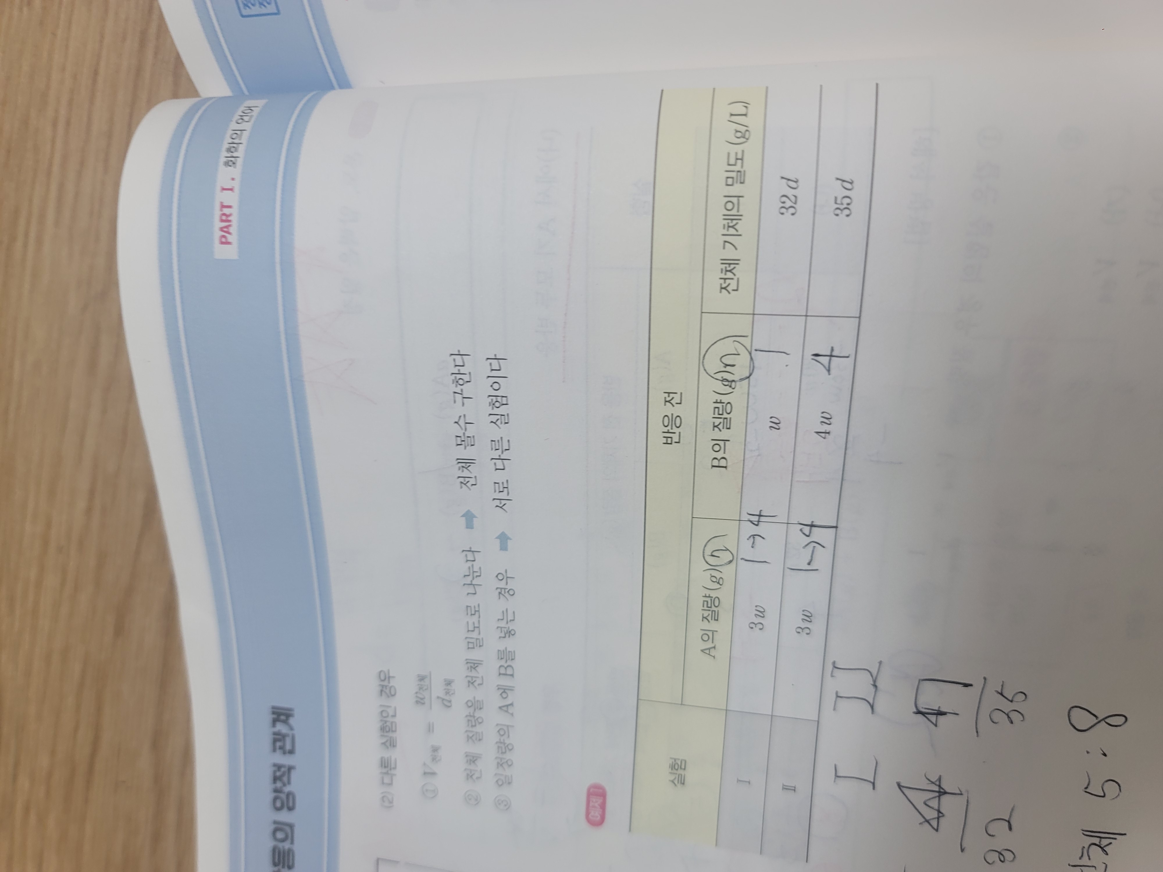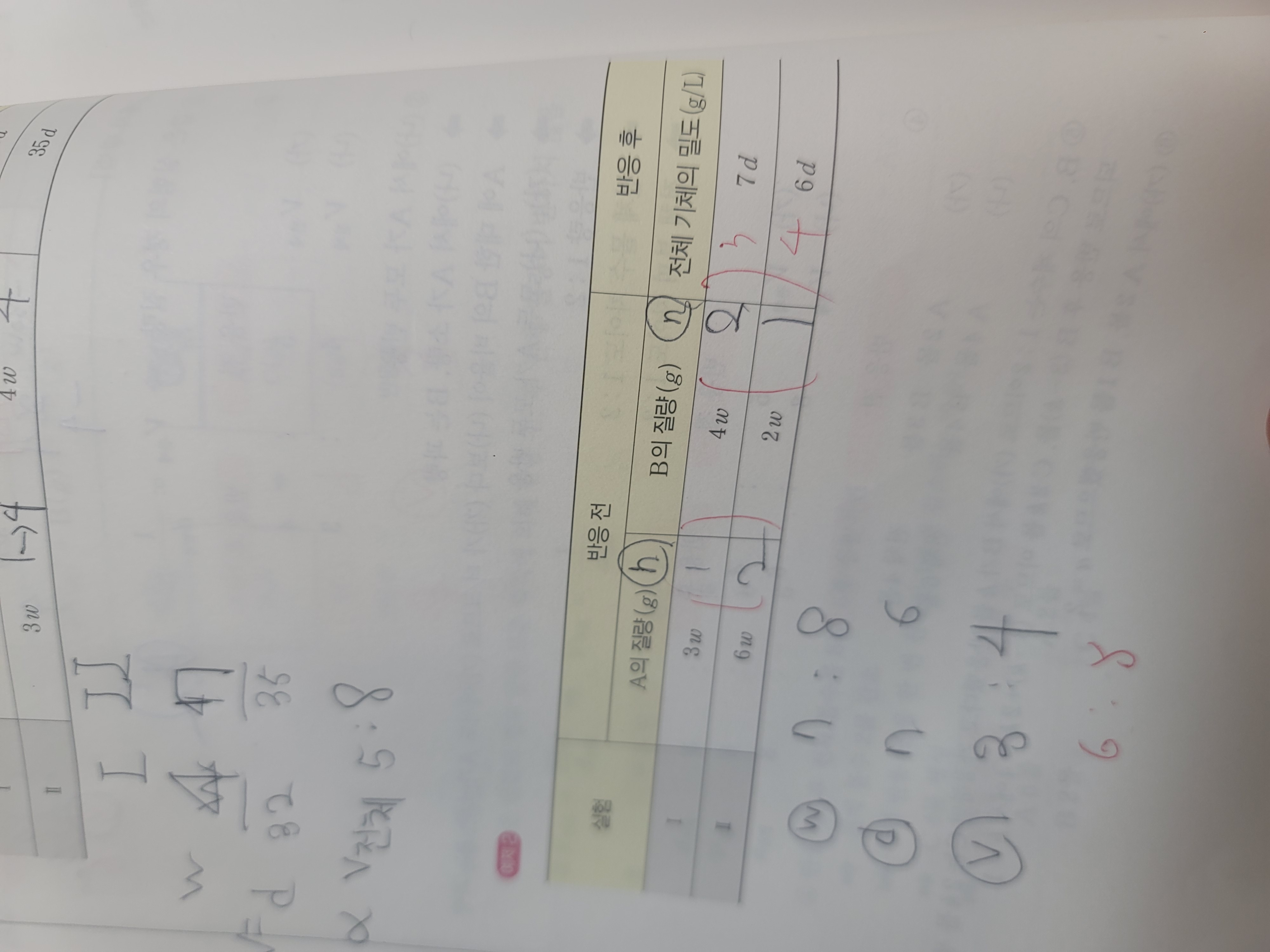 다에서 c는 7v/2 있으니까 A 가 5v/2 있어서 A의 v당 질량은 6w/5 여야 하는 거 아닌가요?