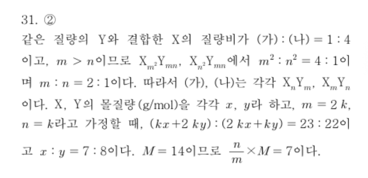 같은 양의 질량에 결합한 X 질량비가 1:4인데데 밑에서 4:1로 변하는 이유를 잘 모르겠습니다 ㅜ