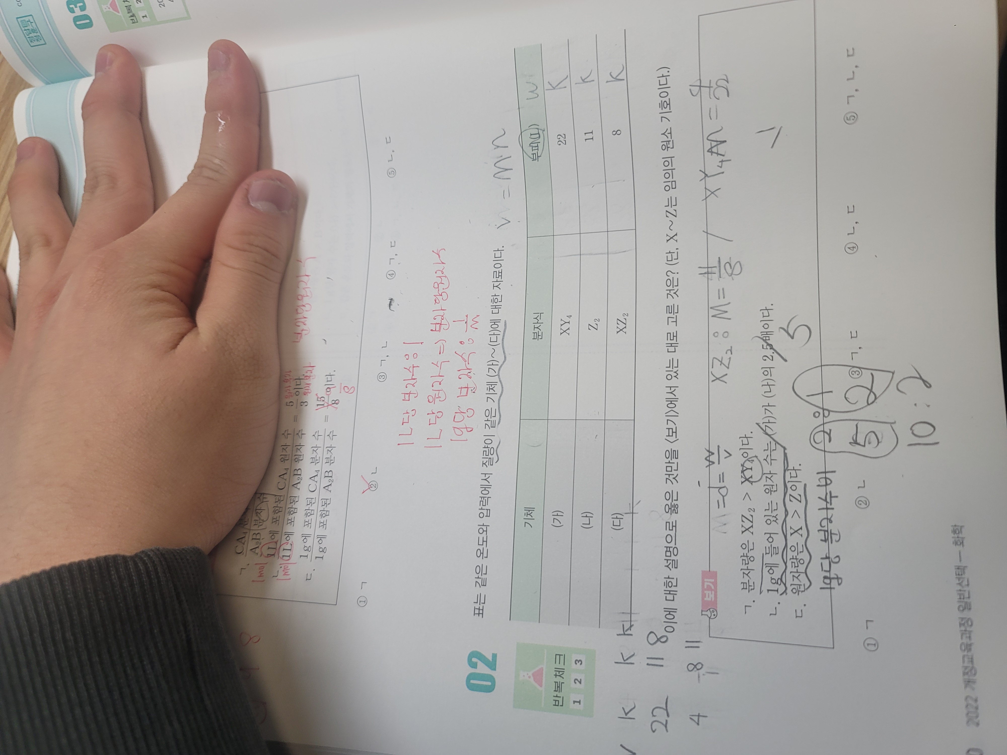 2022개정화학 개념의 정답 40쪽 2번 문제에서 ㄷ에서