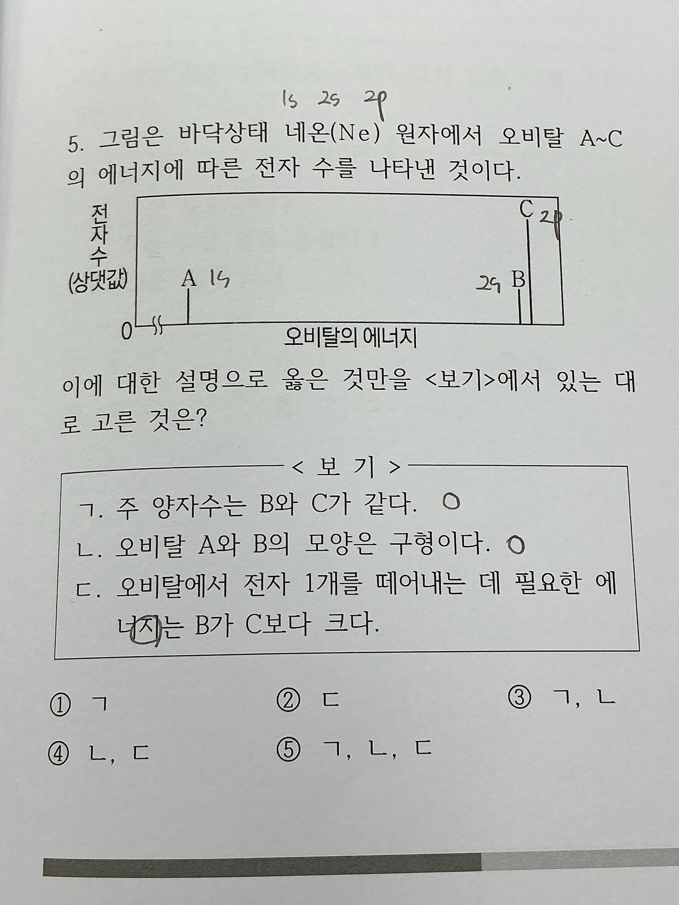 ㄷ 선지) 이온화 에너지를 배우면서 원자에서 전자 1개를 떼어내는 데 필요한 에너지를 비교하는 걸 배웠었는데 한 원자 안에서 서로 다른 오비탈의 전자 1개를 떼어내는 데 필요한 에너지는 어떻게 비교하는지, 관련된 내용이 교재 어디에 있는지 궁금합니다